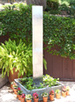 For the last fifteen years of Oliver Andrews’ life, water was the common element of his work. There was water flowing over his sculptures, and had done sculptures in the ocean with Mylar and helium balloons. Andrews was making underwater films, viewing water as a universal medium that allowed a non-verbal communication between all forms of life. He felt it was through water that many people receive contemplative feelings — that gardens are meant to be places of calm and quiet, set aside from everyday life, where one could reconnect with nature. Water was the element of Andrews’ astrological sign, and he died while scuba diving with friends off Anacapa Island in Santa Barbara. Andrews had been a UCLA art professor for 20 years and at the time of his death was head of the sculpture department. He had worked on commissions for public places and private collectors. The University of California Press published a book by Andrews entitled Living Materials: A Sculptor’s Handbook. His WATER BLADE sculpture is a fine example of his minimalist stainless steel and titanium sculpture. Andrews’ works can be seen at El Paseo de Saratoga in San Jose, Odessa, Texas, and at Storm King Art Center in Mountainville, New York.
